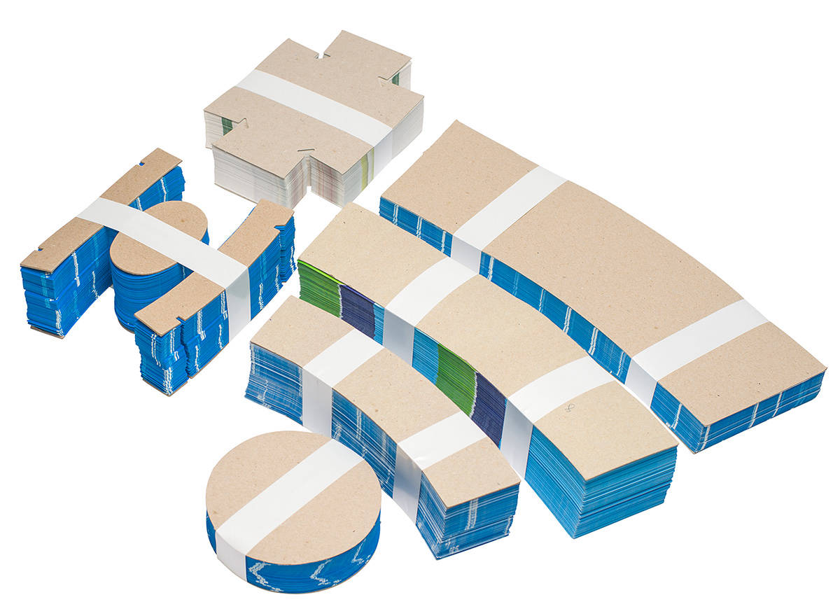 Viele Druckweiterverarbeitungsabteilungen bündeln jetzt völlig problemlos Broschüren, Zeitschriften, Visitenkarten, Faltblätter, Flugblätter, Etiketten etc. Unsere Maschinen werden auch häufig und erfolgreich in vollautomatischen Fertigungsstraßen und in OEM-Konfigurationen angewendet. Lose Produkte können mittels Produktpresse vor dem verrutschen gesichert werden.